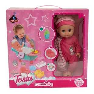 Lalka Tosia z wanienką w różowym ubrankuASKATO ➡️ Dziecko/Zabawki/Lalki i akcesoria ✔️ Lalka Tosia z wanienką to idealny zestaw dla dzieci, które uwielbiają zabawy w opiekę i pielęgnacjęW zestawie znajduje się lalka o wysokości 30 cm oraz wanienka i różnorodne akcesoria, takie jak prysznic, pieluszki, kosmetyki i myjka. Zabawka pozwala na realistyczną zabawę w kąpanie i pielęgnację lalki, rozwijając wyobraźnię i umiejętności motoryczne dziecka. Wysokość lalki: 30 cm EAN: 6901440126272 Grupa wiekowa: 3+ Opakowanie: