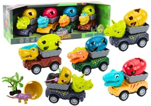 Auto Dinozaur Z Jajem Samochód Z Przyczepą Figurki Zestaw 4 ele. Ten zestaw zabawkowy to prawdziwa gratka dla małych miłośników dinozaurów i pojazdów! W zest...
