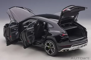 Nazwa: Lamborghini Urus 2018 Nero Noctis Producent: AUTOart Numer id: 79165 Skala: 1/18 Opis: Model kompozytowo-metalowy, w modelu mamy otwierane drzwi oraz skrętne koła, środek został wyłożony miekką wykładziną. EAN : 674110791655