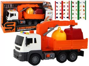 LeanToys Ciężarówka Śmieciarka Z Dźwigiem Napęd Frykcyjny Dźwięki Pomarańczowa 1:16