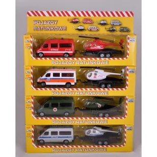 Pojazdy ratunkowe - Zestaw ratunkowy. Pojazdy wykonane z metalu z plastikowymi elementami wnętrza i podwozia. Posiadają napęd, dźwięk i światło.