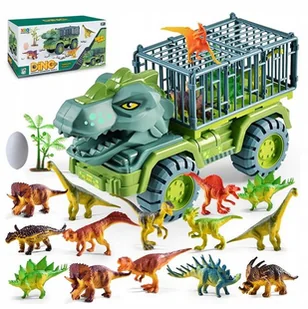 DUŻY ZESTAW CIĘŻARÓWKA DINOZAUR TRANSPORTER T-REX TIR + 15 DINOZAURÓW I AKCESORIAWSPANIAŁY ZESTAW AŻ 18 ELEMENTÓW
