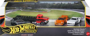 TRACK DAY - ZESTAW 4szt JBM05 HOT WHEELS PREMIUM 2025 GMH39 MATTEL WYMIARY OPAKOWANIA: ok. 28,5 x 13 X 10cm Opis przedmiotu: Kolekcjonerski zestaw 4 samochod...