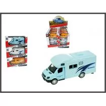 Auto metalowe kamper o wymiarach 11x5x4cm z napędem w trzech kolorach , pakowane pojedyńczo w pudełeczko 14,5x7x6cm . display 30x26x22cm pakowanie 24/144