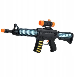 KARABIN BROŃ dźwięk/światło zabawka plastikowa 55cm Plastikowy karabin z lunetą na baterie – 55 cm ? Efektowna zabawka dla małych fanów akcji i przygód! Dług...