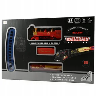KOLEJKA ELEKTRYCZNA POCIĄG WAGONY LOKOMOTYWA PAROWÓZ TORY KOLEJKA NA BATERIE Odkryj magiczny świat kolei! Ten zestaw składa się z 23 elementów, w tym realist...