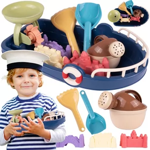 Łopatka, grabki oraz trzy foremki pozwolą zbudować Twojemu dziecku zamek z pisaku czy też inne ciekawe konstrukcje. Na statku znajduje się młynek, który kręci się podczas gdy wsypiemy do niego piasek lub wlejemy wodę. Statek może być używany do zabawy w wannie, basenie czy jeziorze. Niektóre dzieci lepiej oswajają się z wodą mając ze sobą zabawkę. Idealny wybór dla osób szukających zabawek na ciepłe dni na powietrzu.