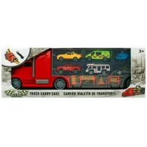Ciężarówka z 6 pojazdami i akcesriami drogowymi do zabawy dla chłopców. Produkt nie jest przeznaczony dla dzieci poniżej 3 roku życia.