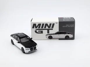 Mini GT BMW i7 xDrive60 Alpine White / Black Sapphire LHD #959 Skala 1:64 Produkt przeznaczony dla osób powyżej 14 roku życia.