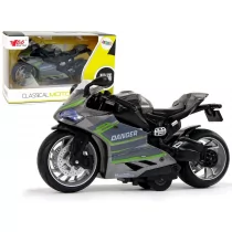 Motocykl Sportowy Szary Zielony Pasy 1:12 Napęd Pull-Back Dźwięk Światła