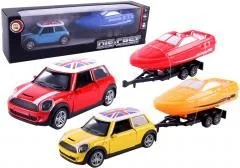 Samochód z łodzią na przyczepie metal mix. Zabawka. Wskakuj za kierownicę, zapnij pasy i ruszaj nad jezioro! Ten wyjątkowy zestaw od Pro Kids Die-Cast to prawdziwa gratka dla młodych fanów motoryzacji i wodnych przygód Kompaktowy samochód osobowy, inspirowany brytyjskim klasykiem, wyróżnia się. . .