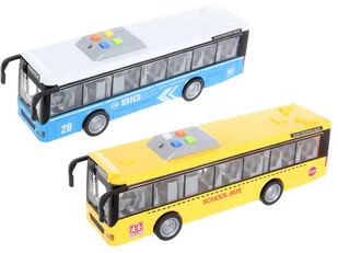 MIEJSKI AUTOBUS - MIX Miejski Autobus to rewelacyjne autko do zabawy posiadające napęd zamachowy. Pojazd wykonany w całości z plastiku, posiada ruchome elementy. Posiada również gumowe ruchome koła, które zachęcą dziecko do zabawy przez wiele godzin. Na dachu autobusu znajdują się guziki, które po naciśnięciu uruchamiają dźwięki oraz światła wewnątrz kabiny. Dodatkowo pojazd posiada otwierane drzwi do wejścia.