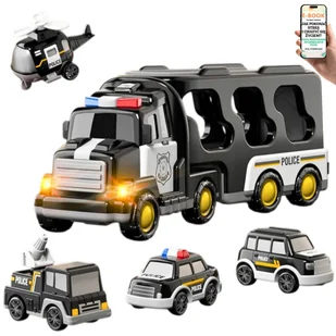 TIR POLICYJNY 5w1 Policja Autka Dla Dziecka Zestaw RATUNKOWY z autami, syreną i światłem – Prezent dla dzieci 3+ EBOOK-1