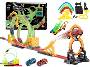 Tor samochodowy składający się z 22 elementów. To idealna propozycja dla wszystkich fanów ekstremalnej jazdy! Samochód aż dwie ekstremalnie niebezpieczne pętle 360 stopni. Po ich pokonaniu na auto czeka dodatkowa atrakcja w postaci skoczni oraz 2 kółek z imitacją ognia.
