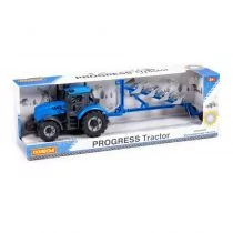 Ten zabawkowy traktor z serii PROGRESS sprawi, że oczy Twojego malucha rozbłysną!!! Ten traktor wraz z odwracalną przyczepą z pługiem w wiernej, przyjaznej dzieciom replice oferuje wiele możliwości zabawy dla małych rolników. Otwierana maska sprawia, że zabawa staje się prawdziwym przeżyciem. Dziecięce rączki nie mają się czego obawiać, ponieważ maskę można zablokować w pozycji otwartej. Odłączana przyczepa jest wyposażona w funkcję obracania - pług można obracać w lewo/prawo w pozycji transportowej lub roboczej. Koła siodłowe również zapewniają bezpieczny transport.