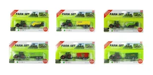 Traktor z przyczepą MIX. Model lub pojazd. Zestaw traktor wraz z przyczepą Posiada plastikowe i metalowe części Produkt występuje w kilku wersjach, wybierany losowo Cena dotyczy jednej sztuki Produkt zapakowany w kartonową podstawkę z przezroczystym kloszem Podane wymiary są wymiarami opakowania