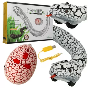 Oferujemy węża zdalnie sterowanego pilotem w kształcie jajka. Wąż wygląda i porusza się niezwykle realistycznie- pełza do przodu i na boki. Zapewni on długie godziny zabawy każdemu małemu łowcy przygód oraz rozwija jego sprawność manualną. Zdalnie sterowany wąż idealnie nadaje się do robienia psikusów i kawałów oraz urządzania wyścigów. Sprawi on niezwykłą frajdę pomysłowym dzieciom zarówno młodszym i starszym, lubiącym interaktywne zabawki. Wąż posiada wygodą opcję ładowania przez kabel USB.