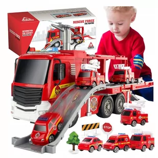 Wóz Strażacki Na Wodę Straż Pożarna Dźwięki I Światła +4 Pojazdy Ratownicze