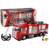 Zdalnie sterowany wóz strażacki z drabiną Jesteśmy przekonani, że niemal każdy kilkuletni chłopiec marzył o tym, by w przyszłości móc zostać dzielnym strażakiem i gasić płomienie - zabawka ta będzie spełnieniem marzeń! Zdalnie sterowany wóz strażacki sprawi, że maluch bez najmniejszej przeszkody. . .