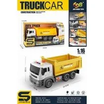 Wywrotka wykonana w skali 1: 16 z wysokiej jakości tworzywa sztucznego. Została odwzorowana z dbałością o charakterystyczne detale. Zabawka występuje w żółto-białej kolorystyce z zamontowanym systemem ostrzegania świetlno-dźwiękowego. Na dachu samochodu znajdują się przyciski, po których naciśnięciu.