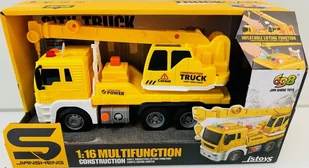 Zabawka samochód dźwig na baterie z dźwiękami i światłem 0887 Zabawka samochód dźwig na baterie z dźwiękami i światłem 0887 Zabawka po naciśnięciu przycisku na kabinie świeci i wydaje odgłosy odpalania silnika,klaksonu i odgłosu samochodu dźwigu Ramię dźwigu można podnosić i obracać. Długość zabawki to 25 cm Zabawka przeznaczona dla dzieci od lat 3.