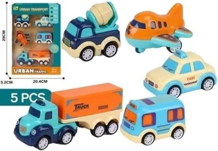 Zestaw pojazdów z napędem dla malucha MIX. Zabawka. Odkryj fascynujący świat miejskiego transportu z tym wspaniałym zestawem 5 różnorodnych pojazdów! W pudełku czekają na Twoje dziecko: Samolot: Gotowy do podbicia przestworzy w żywych, pomarańczowo-turkusowych barwach Taksówka: Klasyczny. . .