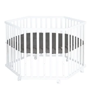 roba Kojec dla niemowląt, 6-kątny, z drewna, biały – mobilny kojec dla niemowląt z rolkami i wkładką ochronną, grafitowy, pikowany, z wegańskiej skóry, kratka ochronna, z regulacją wysokości