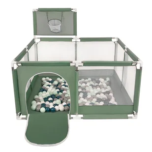 Selonis Boisko KK-100X z piłeczkami 6cm zielony: ciemny turkus-szary-biały-mięta 125x125x105/200piłek Zabawka kojec