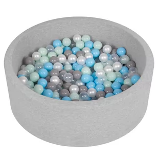 Selonis, suchy basen okrągły z piłeczkami 6cm jasnoszary: perła-szary-transparent-babyblue-mięta 90x30cm/200piłek