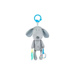 Zawieszka Pies Beniamin szary Piesek zadba o to, żeby żaden bobas się przy nim nie nudził. Ta urocza zawieszka wyposażona została w gryzaczek, który przyniesie ulgę obolałym dziąsłom ząbkującego bobasa. Zabawkę zdobi także grzechocząca obręcz z kolorowymi kuleczkami. Praktyczny uchwyt do mocowania zabawki, pozwoli przymocować ją w dowolnym miejscu, aby wszędzie mogła towarzyszyć maluchowi. Cechy produktu: – grzechotka; – gryzak; – praktyczna zawieszka do przymocowania w wybranych miejscu; Wiek: 0m+