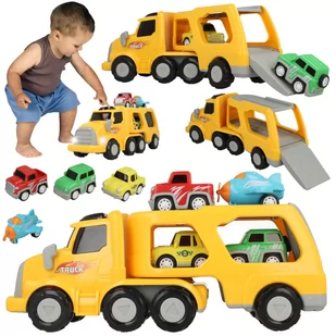DUŻA CIĘŻARÓWKA TIR LAWETA Z NAPĘDEM I NAJAZDEM + 3 AUTKA + SAMOLOT ⏩ Cudowny zestaw, który wprowadzić Twoje dziecko do świata motoryzacji. Duży tir posiada napęd frykcyjny, a mniejsze autka napęd naciągowy. Zabawka posiada specjalne efekty świetlne i dźwiękowe.