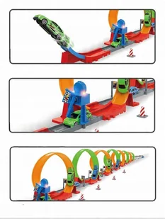 EKSTREMALNY TOR WYŚCIGOWY SAMOCHODOWY 4 OKRĄŻENIA + 2 AUTKA W ZESTAWIE Rozpocznij pełną emocji zabawę z ekstremalnym torem wyścigowym dla dzieci! Zestaw zawi...