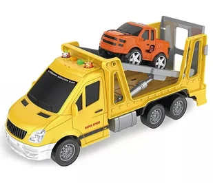 Laweta ze Światłem i Dźwiękiem + Samochód – Zestaw Dla Małych Kierowców Prawdziwa frajda z transportu – laweta z przyczepą i samochodzikiem, które świecą i w...