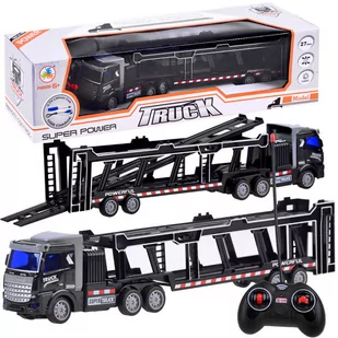 Tir z lawetą pojazd zdalnie sterowany to zabawka, z którą nie sposób się nudzić. Kolorystyka samochodu nawiązuje do pojazdów poruszających się po prawdziwych drogach. Ciężarówką steruje się za pomocą pilota o częstotliwości 27 MHz. Poręczny pilot z anteną zmieści się w każdej dłoni, umożliwia jazdę do przodu i do tyłu, skręt prawo, lewo. Dzięki przemyślanej konstrukcji, naczepa tira "łamie się" jak w prawdziwym samochodzie.