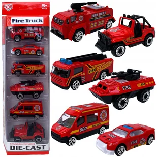 Wozy strażackie straż pożarna pożarnicze samochody metalowe zestaw 6 sztuk