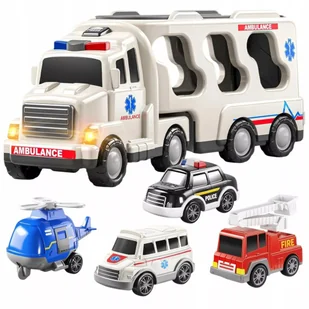 Zestaw laweta autka ambulans straż tir policja dźwięk światło SX600-21A SX600-21A Przygotuj się na ekscytujące akcje ratunkowe z Zestawem lawety karetki z 4 ...
