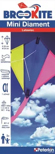 Brookite Mini latawiec Mini diament Dante. Mini Diament to niewielki, klasyczny latawiec jednolinkowy, wykonany z nylonu spinakerowego Posiada wsporniki z włókna szklanego oraz plastikowy uchwyt do nawijania na końcu linki Przeznaczony do puszczania przy słabym wietrze 1-2 Bf Latawiec zapakowany. . .