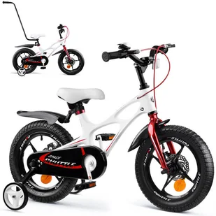 Rowerek renomowanej firmy Royal Baby Space Shuttle 14" to pierwszy rower wysokiej jakości dla amatora dwóch kółek, idealnie nadaje się dla prawdziwego podwórkowego kierowcy. Magnezowa, lekka rama o zakrzywionej powierzchni i gładkich liniach. Regulowana kierownica profesjonalnie wyprofilowana z bezpiecznymi gumowymi manetkami, z zamkniętą osłoną regulacji, dzwonkiem i światełkiem odblaskowym. Komfortowe, siodełko, 14 calowe koła wysokiej jakości opona, podwójnie bezpieczny układ hamulcowy z podwójnymi hamulcami tarczowymi zapewnią komfortową i stabilną jazdę. Boczne kółka + dopinany pałąk zapewniające na początku utrzymanie równowagi, aby dziecko szybciej nauczyło się samodzielnej jazdy. Pełna osłona łańcucha chroniąca przed zranieniem i pobrudzeniem. Dobrej jakości komponenty nie sprawiające problemów w użytkowaniu. Kolorystyka i grafika znajdująca uznanie w oczach właściciela i kolegów z podwórka. Rowerek ten jest świetnie dopracowany, odległości między kierownicą, siodełkiem a pedałami są proporcjonalnie zachowane co zapewnia płynną i wygodną jazdę.