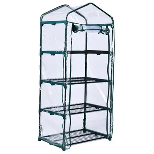 Szklarnia została wyposażona w stalową konstrukcję z czterema poziomami półek, która umożliwia efektywne zagospodarowanie miejsca i zwiększenie ilości upraw. Wykonana z przezroczystej folii PCV szklarnia zapewnia roślinom ochronę przed niekorzystnymi warunkami atmosferycznymi, takimi jak deszcz, silny wiatr czy niskie temperatury, a jednocześnie umożliwia im pełny dostęp do światła słonecznego.