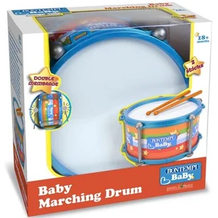 podwójna membrana, realistyczny dźwięk, 2 pałki perkusyjne, rozmiar ok. 24 cm Bębenek marszowy włoskiej firmy Bontempi to idealny instrument dla małego dobosza. Zestaw zawiera 2 plastikowe pałeczki Wymiary produktu: 24,5x13,5x24,5 cm Wymiary opakowania: 25,3x25,5x14cm Wiek: