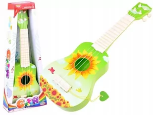 Urocza plastikowa pierwsza gitara dla maluszka zachwyci każde dziecko. Zabawka jest w całości wykonana z plastiku posiada żyłkowe struny, piórko do grania. Gabaryt gitary jest pomyślany o najmłodszych, dzięki czemu jest łatwy w utrzymaniu i graniu. Gitara jest w rewelacyjnym kolorze, ozdobiona fantastycznymi wzorami, zapewne zyska uznanie w oczach każdego muzyka. Gitara sprawdzi się dla najmłodszych pociech kochających muzykę oraz pragnących szlifować pierwsze gitarowe chwyty.