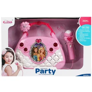 Karaoke w różowej torbie Zestaw do karaoke dla dzieci w różowej torebce z księżniczkami to marzenie każdego małego muzyka! Ten kompletny zestaw zawiera wszys...