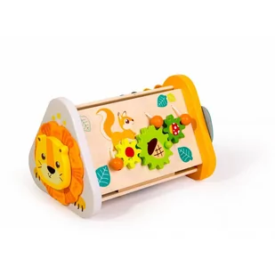 Kostka Edukacyjna 3w1 Interaktywne Pudełko Aktywności pudełko marki Classic World to wykonana z drewna zabawka, która dostarczy mnóstwo rozrywki Twojemu dziecku. Zabawka gra muzykę dżungli, co niezwykle podoba się każdemu maluchowi. Posiada mnóstwo funkcji: cymbałki, gra w nawigatora, zabawa kołami zębatymi. Świetna wielofunkcyjna zabawka dla dzieci w formie pudełka. Drewniane pudełeczko utrzymane jest w konwencji dżungli, więc możemy na nim dostrzec na przykład podobiznę króla dżungli - groźnego lwa! Zabawka wyposażona została w wiele genialnych funkcji, dzięki którym nie znudzi się dzieciom zbyt szybko.