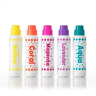 Świetne błyszczące flamastry kropkowe marki Do A Dot Art. Flamastry kropkowe Do A Dot Art posiadają gąbczastą końcówkę, która nie wysycha. Zawierają nietoksyczną, zmywalną farbę, która szybko schnie, w błyszczących kolorach, które nie rozlewają się i nie rozpryskują. Specjalna formuła pozwala na mieszaniu kolorów flamastrów i nakładaniu ich na siebie. Zestaw zawiera 5 markerów w błyszczących kolorach - cytrynowym, koralowym, magenta, lawendowym, cyjanowym.