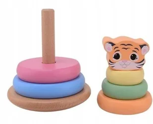 Drewniana wieża układanka piramidka głowa tygryska zabawka dla dzieci 12m+