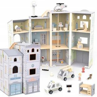 Zestaw Drewniana Składana Remiza Strażacka + Posterunek Policji MAMABRUM Najważniejsze cechy: elementy wykonane z wysokiej jakości drewna, stabilna konstrukc...