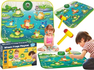 INTERAKTYWNA MATA - POLOWANIE NA ŻABY Interaktywna Gra Polowanie Na Żaby to niezwykła zabawka, która umożliwia dzieciom rozwijanie zdolności motorycznych poprzez uderzanie młotkiem w świecące żabki na macie. Polowanie na żaby umożliwia rozwijanie inteligencji dzieci, zdolności manualnych oraz koordynacji ręka-oko. Na planszy znajduje się siedem żab, które podświetlane są światłem. ZASADY GRY: Poziom pierwszy - gracz musi zdobyć 20 na 30 punktów aby przejść do następnego poziomu Poziom drugi - prędkość będzie szybsza, a gracz musi zobyć 60 na 65 punktów, aby przejść do następnego poziomu Poziom trzeci - prędkość będzie jeszcze szybsza, gracz musi zdobyć 95 na 100 punktów, by wygrać grę ZAWARTOŚĆ ZESTAWU: