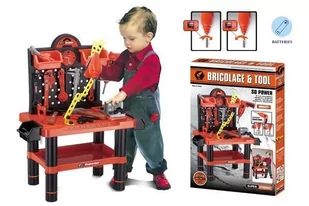 Zabawka posiada solidny stolik z dodatkową podstawką i pojemniczkami na drobiazgi oraz wygodną tablicę narzędziową z dziurkami i uchwytami, które pozwalają zachować porządek wśród dużej liczby przeróżnych narzędzi.