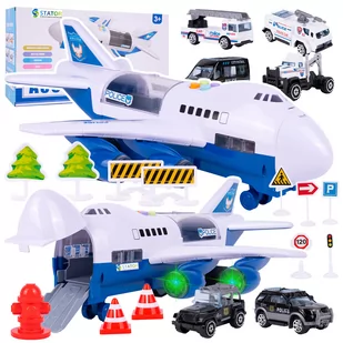 Policyjny SUPER Samolot Transportowy z napędem frykcyjnym dostosowany do przewodu pojazdów! Samolot jest rozkładany i otwierany, posiada efekty świetlne i dź...