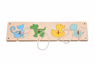Zestaw czterech figur zwierzątek w formie puzzli z wygodnym uchwytem dla dziecka + sznureczek :) - wymiary: 340 mm x 90 mm - materiał sklejka grubości 4 mm -...